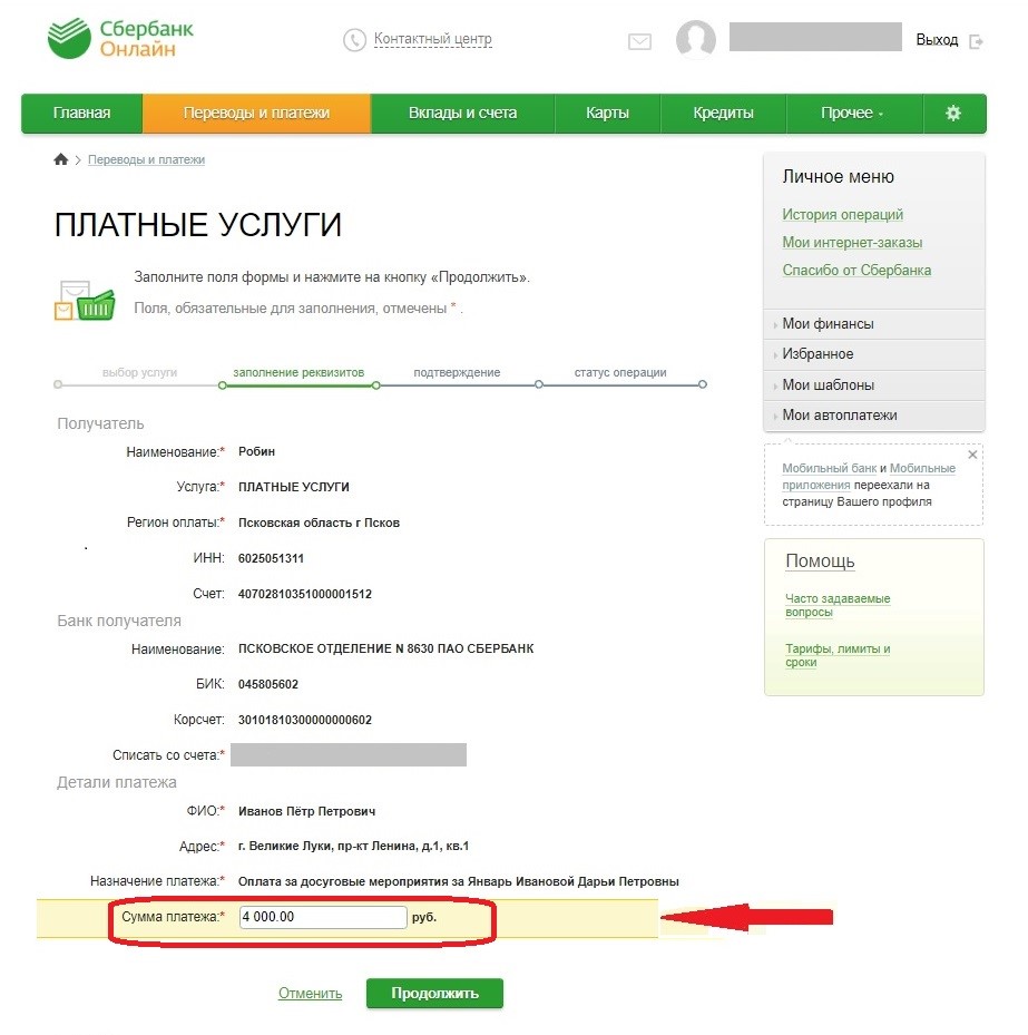 Оплата через личный кабинет Сбербанк » ВЛ Сбер 5