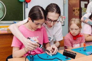 На экологическом ликбезе ребятам рассказали о важности раздельного сбора мусора и правильной утилизации твердых бытовых отходов. Вместе с лекторами — наставниками и волонтерами проекта «Мастерская экороботов» — школьники разобрались, чем опасны батарейки и бездумное использование экологических ресурсов. А еще познакомились с экологическим проектом компании СИБУР под названием VIVILEN: когда пластик получает вторую жизнь и используется на благо людей.
